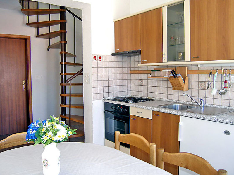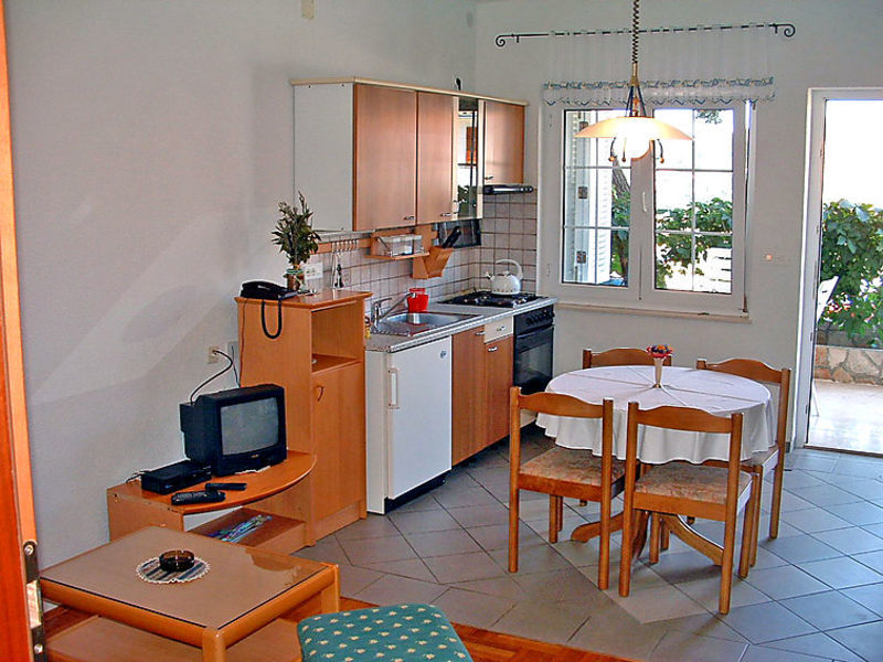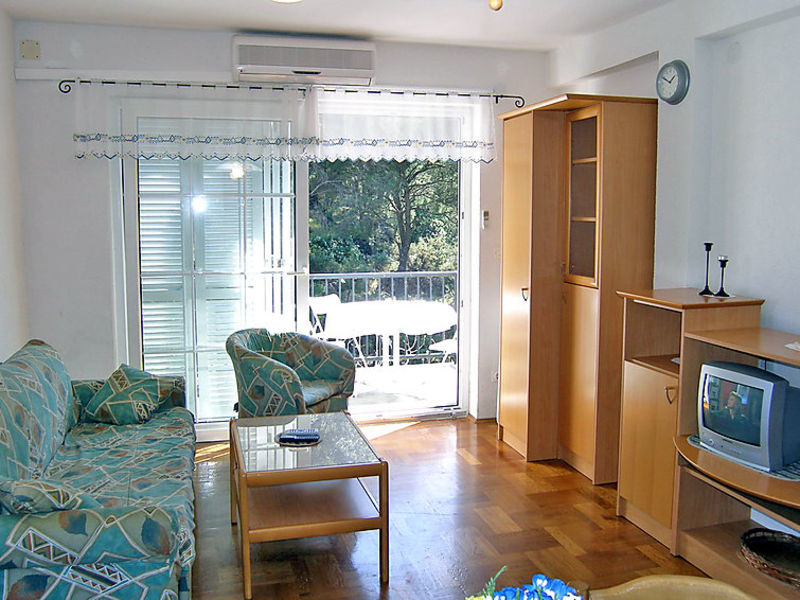 Apartment block "Đorđi". In the resort, in a quiet position on a slope, 200 m from the sea, in a cul-de-sac. For shared use: barbecue. In the house: internet access, washing machine (for shared use, extra). Parking at the house on the premises. Shop 100 m, restaurant 200 m, sandy beach 400 m, rocky beach 200 m, public bathing area 400 m. Please note: There are more similar properties for rent in this same residence.