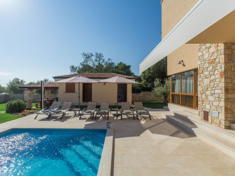 Tar 7 km od Poreč: Pěkný rodinný dům "Villa Vatovac". 300 m od centra Tar, slunná poloha, 3 km od moře, 3 km od pláže. K dispozici pouze pro Vás: pozemek 800 m2, zahrada s trávníkem, bazén, hranatý tvar, vyhřívaný (36 m2, 150 cm hluboký, sezónní dostupnost: 15.Dub. - 15.Říj.), s vnitřními schůdky a čištěním pomocí elektrolýzy soli. Venkovní sprcha, stolní tenis, terasa (19 m2), zahradní nábytek. V domě: přístup na internet, stolní fotbal, pračka, sušička. Parkovací místo (3 x) u domu na pozemku. Obchod 300 m, supermarket 1.5 km, restaurace 300 m, oblázková pláž 3 km, skalnatá pláž 3 km, pláž ke koupání 3 km. Tenis 3 km, od domu vedou turistické trasy 100 m, cyklistická stezka 150 m. Zajímavosti v okolí: Adrenaline Park 5 km. Majitel neakceptuje skupiny mládeže. Bazén vyhřívaný (extra).