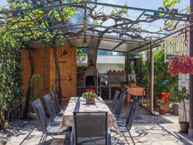 přístup na internet. Parkovací místo na pozemku. Obchod, restaurace, kavárna, pěší zóna 500 m, skalnatá pláž 50 m. Marina 700 m.