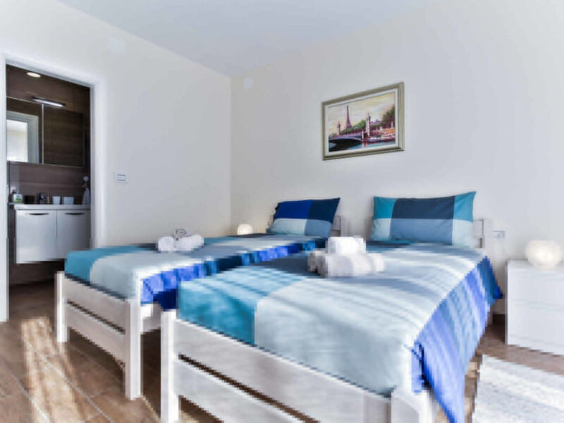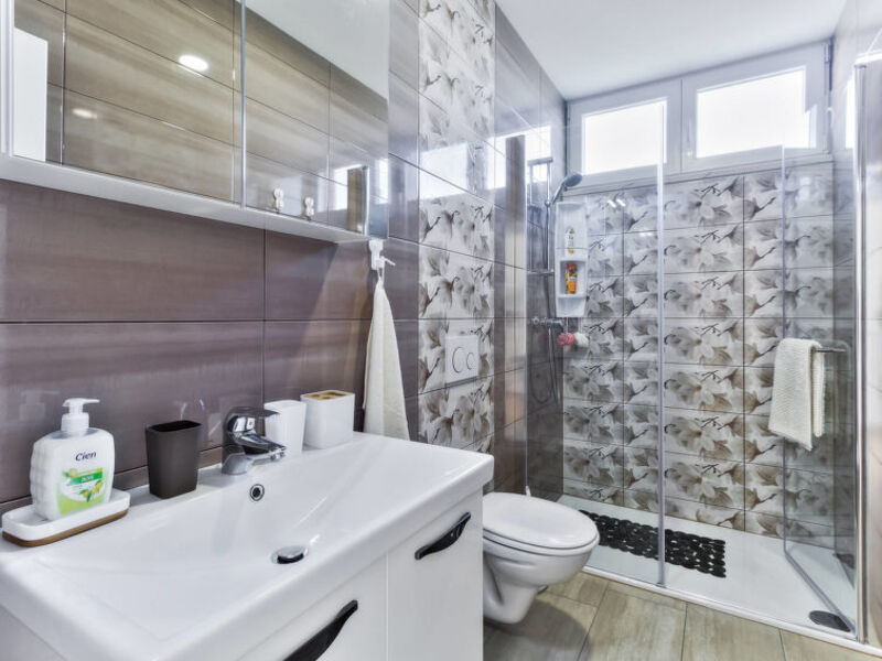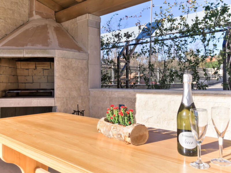 Situation: town centre. Access/parking: 3 x parking on the estate (roofed). Estate (private use): approx. 800 m², closed plot (fence, wall, entrance gate), terraced, well-kept, lawn, olive trees. Garden maintenance by the owner 1 time/s per week. Outdoor facilities(private use): terrace (roofed), further terrace (roofed), balcony (roofed), furnishing provided, brick barbecue, summer kitchen (dining area, refrigerator). Pool (private use): 7.5 x 3.5 m, 1.50 m deep, open throughout the entire season, pool maintenance by the owner 1 time(s) per week. Pool area: tiled, lawn, 8 sun loungers, 4 sunshades, external shower.Sports facilities/ leisure time: private use (free of charge): children's playing equipment.● Distances: Center Kastel in approx. 100 m. Buje in approx. 5 km. Umag in approx. 11 km. Next shopping possibility in approx. 300 m. Next supermarket in approx. 5 km.Airport Pula in approx. 83 km. Sea in approx. 8 km. Rocky beach in approx. 8 km. Pebble beach in approx. 8 km.Golf course Savudrija (18-hole golf course) in approx. 13 km.