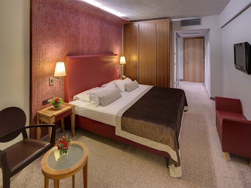 moderně zařízené klimatizované 1-2lůžkové pokoje se sprchou a WC, SAT TV, fénem, minibarem, telefonem, WI-FI ZDARMA, sejfem, některé s balkonem. Pokoje s označením FB mají francouzské lůžko. Pokoje PREMIUM jsou prostornější, s orientací na moře a mají 2 oddělené postele, s možností přistýlky pro dítě do 12 let.