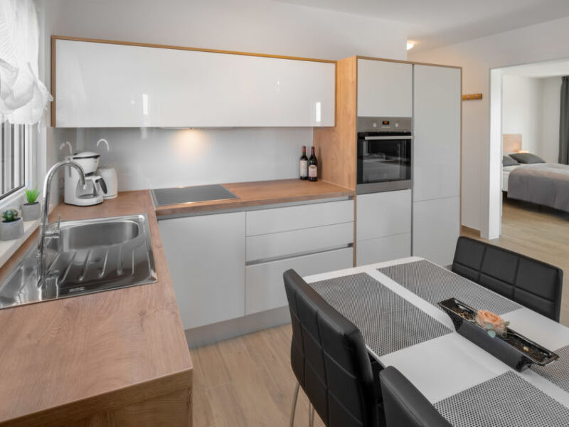 přístup na internet. Parkovací místo u domu na pozemku. Obchod 1 km, supermarket 2 km, restaurace 500 m, oblázková pláž 2. km, skalnatá pláž 2. km, pláž ke koupání 2. km. Golfové hřiště 9 km, tenis 3 km, od domu vedou turistické trasy 500 m, cyklistická stezka 550 m.