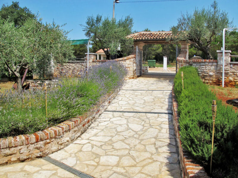 Situation: in the village Grupija. Access/parking: parking on the estate. Estate (shared use): approx. 3000 m², closed plot (fence, hedge, wall), meadow, fruit trees, olive trees. Outdoor facilities(shared use): terrace, furnishing provided. Pool (shared use): 30 m², 1.20 - 1.60 m deep, open throughout the entire season, open from 9:00-AM-6:00-PM h, secured by alarm system, curved shape. Pool area: tiled, 6 deck chairs, 3 sunshades, external shower.Sports facilities/ leisure time: shared use (payment): bikes.Infrastructure: reception service several hours only; washing machine (shared use, payment); dryer for shared use (payment); internet access Wi-Fi (included) in the reception area.Exterior (private use):Plot description: balcony 8 m² (partially roofed), furnishing provided.● Distances:Center Savudrija in approx. 5 km. Umag in approx. 9 km. Next shopping possibility (Savudrija) in approx. 5 km. Next supermarket (Umag) in approx. 9 km.Sea in approx. 5 km. Rocky beach in approx. 5 km.Golf course Savudrija (18-hole golf course) in approx. 2 km.