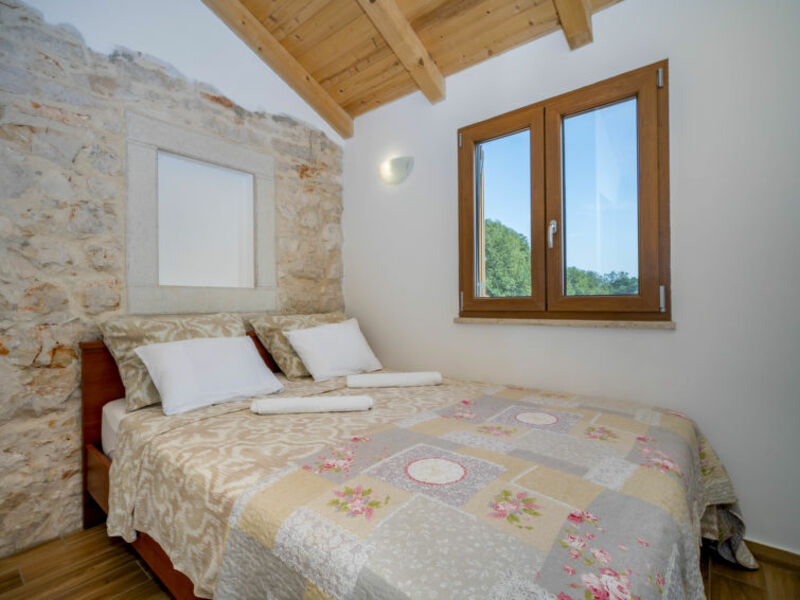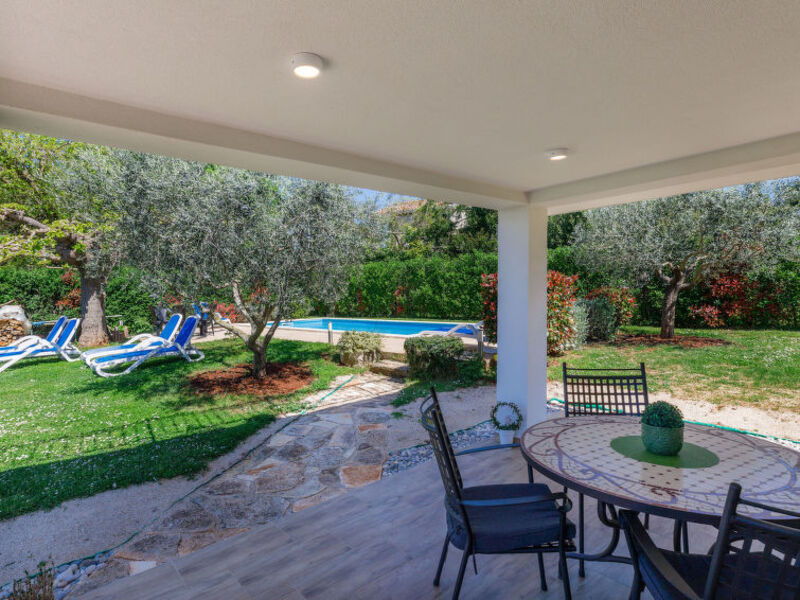 pozemek 800 m2 (oplocený) s trávníkem, bazén, hranatý tvar (7 x 3 m velký, 140 cm hluboký, 15. 4. 01. 0. , s vnitřními schůdky. Gril (houpačka). Příjezd k domu (250 m přírodní cesta). Parkovací místo u domu na pozemku. Obchod 1. km, restaurace 1. km, oblázková pláž 1. km, skalnatá pláž 1. km.