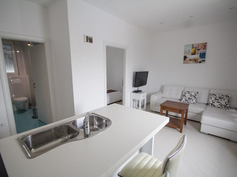 Krásná oblázková pláž v uměle vybudované laguně i kamenité pláže s betonovými platy se nacházejí cca 400 m od vily, přístup do moře pozvolný, místy i písčité dno.