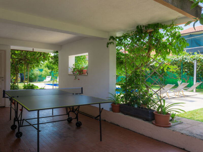 přístup na internet, stolní tenis, odkládací místnost na kola, pračka. Parkovací místo (3 x) u domu na pozemku. Obchod, restaurace 200 m, písečná pláž, oblázková pláž 800 m. Golfové hřiště 9 km, tenis 1 km, od domu vedou turistické trasy 100 m, cyklistická stezka 150 m. Majitel neakceptuje skupiny mládeže.