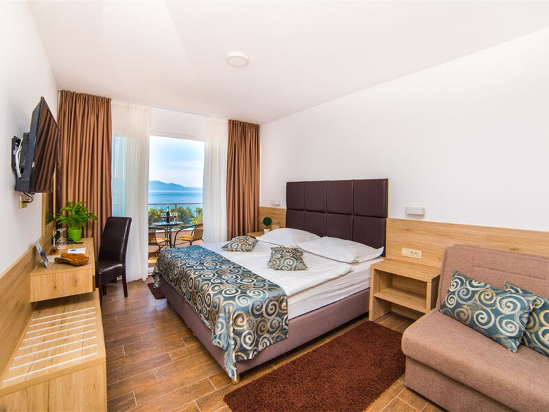 Klimatizované 2–3lůžkové pokoje se zcela novým vybavením, se sprchou a WC, s balkonem, SAT TV, minibarem, fénem a sejfem, s možností přistýlky. Pokoje s označením SW mají přímý pohled na moře, ostatní pokoje mají boční pohled na moře. Pokoj 2 (+0) M-SW (v nejvyšším patře) má francouzský balkon s přímým výhledem na moře. Pokoje v depandanci jsou prostornější než pokoje v hotelu.