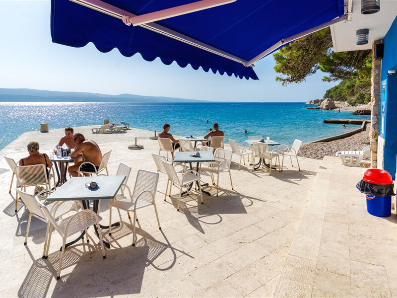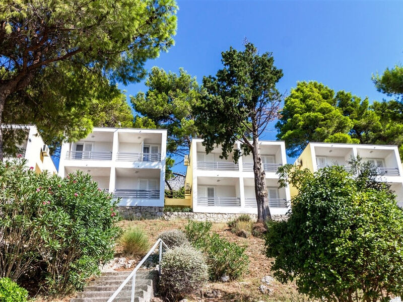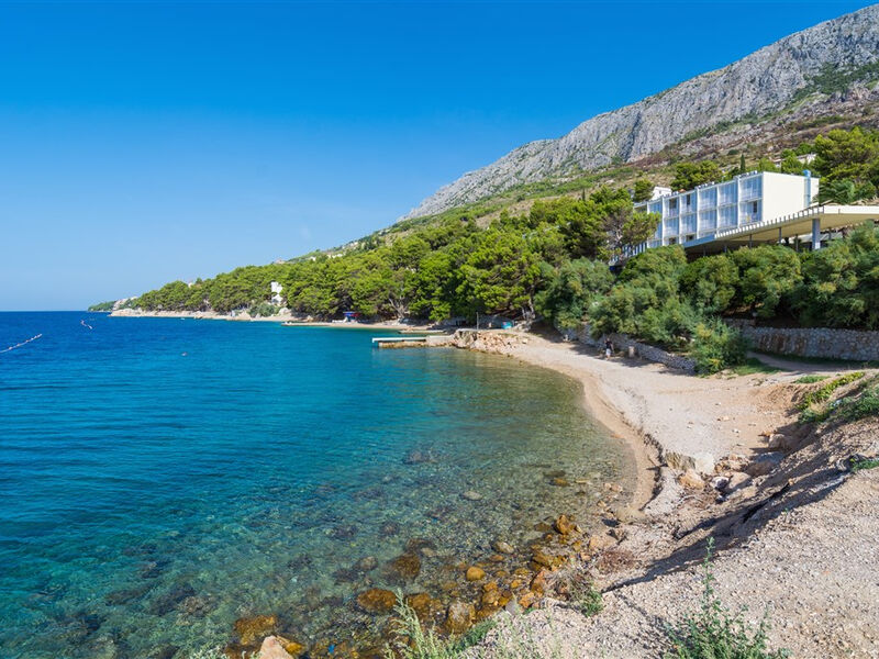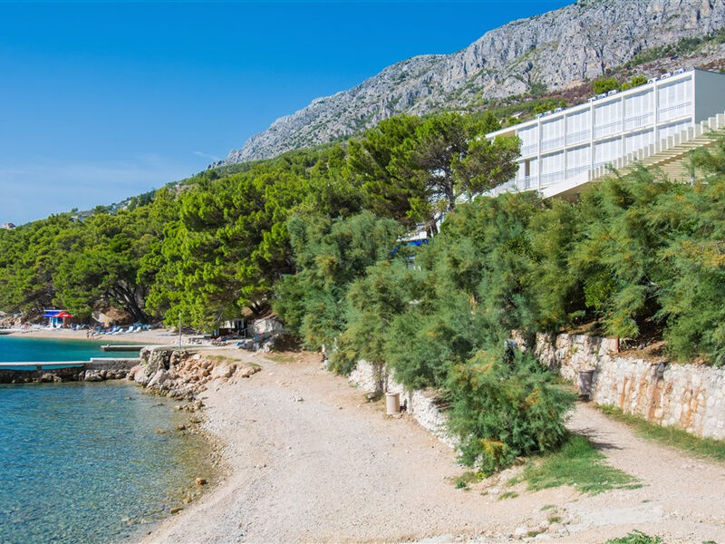 Komplex hlavní budovy, přilehlých budov s apartmány a bungalovů je umístěn v zalesněném svahu přímo na pobřeží moře, cca 8 km od Omiše. Vzhledem k členitému terénu nedoporučujeme pro osoby se sníženou pohyblivostí.