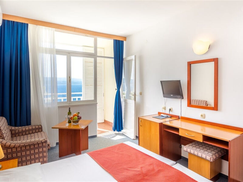 Dvoulůžkové pokoje v hlavní budově s možností přistýlky mají vlastní příslušenství (koupelna/sprcha, vysoušeč vlasů, WC), klimatizaci, SAT/TV, Wi-Fi zdarma. Pokoj standard s výhledem na moře je s balkonem.