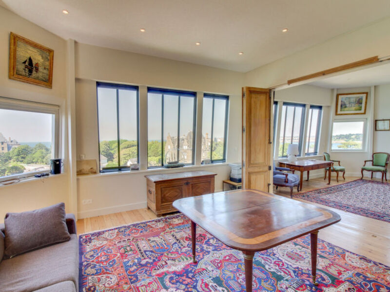 Pěkná, historická rezidence "Château des Deux Rives", 3-podlažní, postavená v roce 1878. Ve čtvrti la Pointe du Moulinet, centrální poloha, 150 m od moře, 150 m od pláže. Obchod 300 m, potraviny 500 m, supermarket 750 m, obchodní centrum 3. km, restaurace 300 m, bar 350 m, pekárna 500 m, železniční stanice "SNCF de Saint Malo" 11 km, písečná pláž "L'Ecluse" 170 m, park "Port Breton" 1. km, krytý bazén 350 m, termální bazén "Thalasso de Dinard" 2. km. Sportovní přístav 850 m, golfové hřiště (18 jamek) 7. km, škola plachtění 150 m, tenis 2 km, minigolf 2. km, jízdárna 2. km, od domu vedou turistické trasy 50 m.