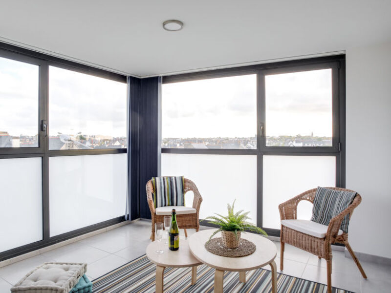 výtah. Supermarket 100 m, pekárna 500 m, centrum dostupné pěšky během 20 min. Železniční stanice "gare TGV St Malo" 750 m, trajekt "Gare maritime" 3 km, písečná pláž "du Sillon" 400 m, krytý bazén 3 km, termální bazén "Les thermes marins de St Malo" 1. km. Sportovní přístav 3. km, škola surfingu 800 m, jízdárna 5. km.