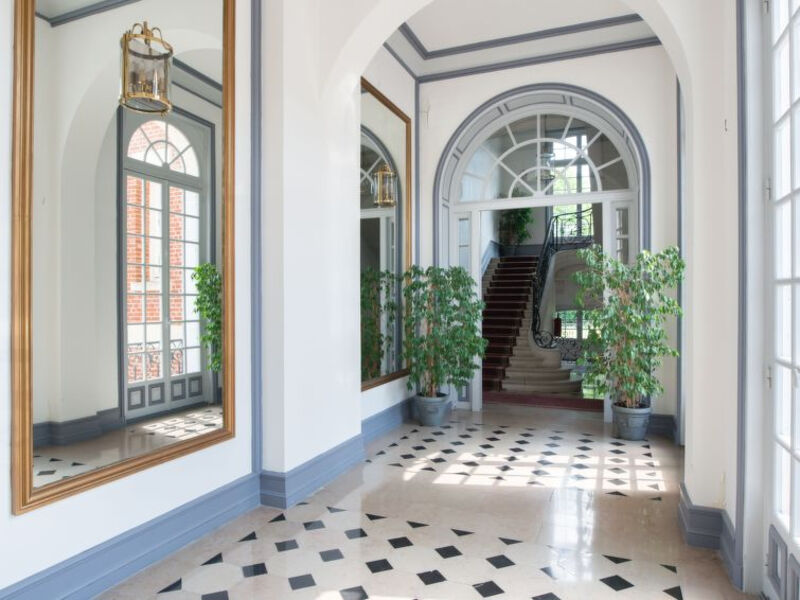 Deauville: Zámek "Bel Abri", 3-podlažní. Ve čtvrti de l'hippodrome, vyvýšená poloha, 2 km od moře, 2 km od pláže, u golfového hřiště.