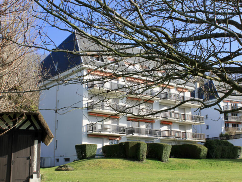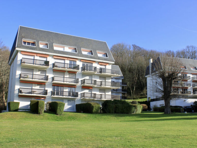 Trouville sur Mer: Rezidence "Le Clos des Ormeaux", 4-podlažní. 1. km od centra Trouville sur Mer, na kopci, 850 m od moře, 850 m od pláže.