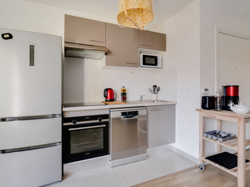 výtah, odkládací místnost na kola. Obchod 3. km, potraviny, supermarket 800 m, obchodní centrum 3. km, restaurace 2 km, bar 1. km, pekárna 700 m, centrum dostupné pěšky během 10 min. Železniční stanice "La Teste de Buch" 1. km, písečná pláž "Thiers" 5 km, park "de la Chêneraie" 3. km. Sportovní přístav 5 km, golfové hřiště (18 jamek) 4 km, škola surfingu 6 km, škola plachtění 5 km, tenis 5. km.