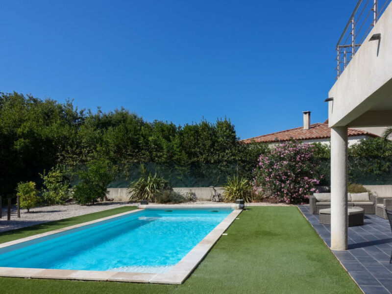 pozemek 800 m2, bazén, hranatý tvar, hlídaný (9 x 4 m velký, 150- 150 cm hluboký, 01. 5. 30. 0. , s bezpečnostním zařízením. Parkovací místo (2 x) na pozemku. Obchod 600 m, potraviny, restaurace, bar, pekárna, kavárna 500 m, autobusová zastávka "La Faviere" 500 m, písečná pláž "La Faviere" 500 m. Sportovní přístav 800 m, golfové hřiště (18 jamek).