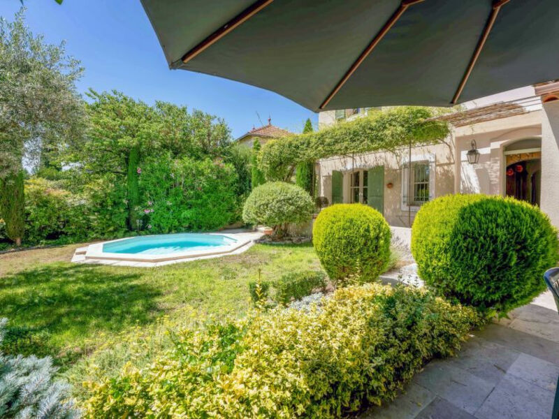pozemek 535 m2 (oplocený), bazén (4 m v průměru, 150 cm hluboký, 01. 6. 30. 9. . Terasa (30 m2), zahradní nábytek.