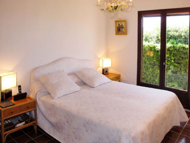 pěkná terasovitá zahrada, 1'800 m2 (oplocená) s rostlinami a stromy, bazén, oplocený (12 x 6 m velký, 100- 220 cm hluboký, 01. 1. 31. 2. , s bezpečnostním zařízením. Venkovní sprcha, domek u bazénu s lednicí, terasa, parkovací místo (3 x) na pozemku. Obchod 1. km, písečná pláž 2. km.