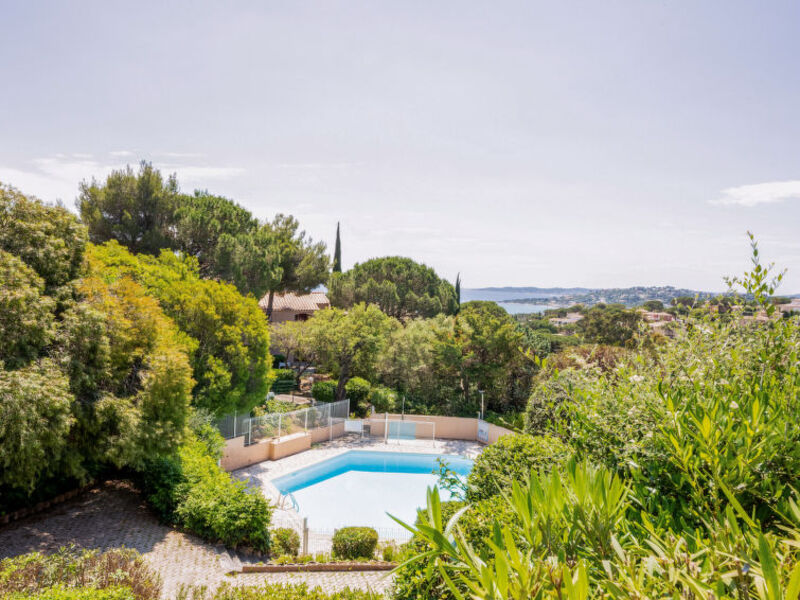 Rezidence "Les Coteaux de la Nartelle". Mimo obec, 5 km od centra Ste Maxime, slunná, vyvýšená poloha ve svahu, 400 m od moře.