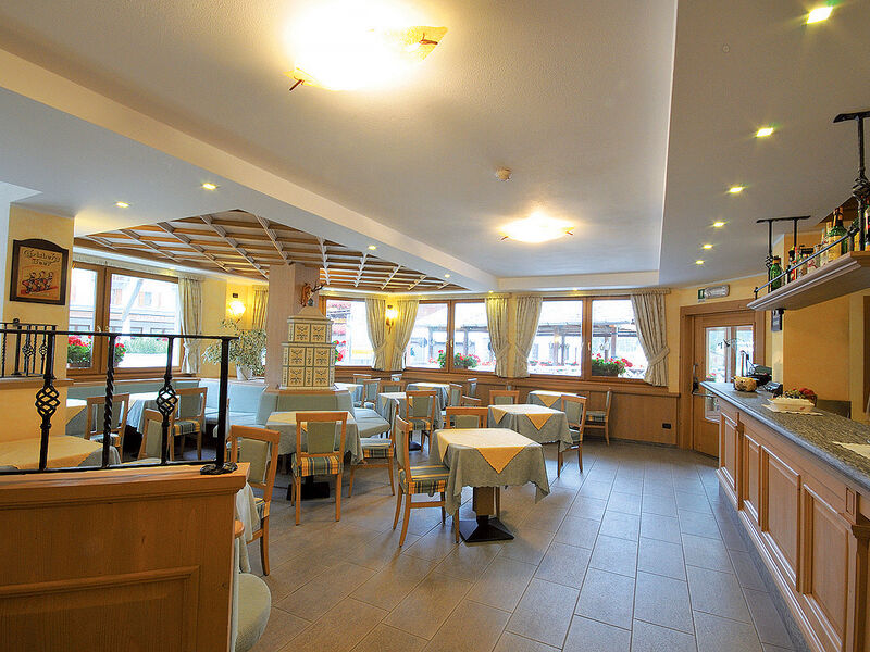 recepce / velká lobby s TV sat. / wi-fi připojení k internetu*, restaurace vyhrazená pro hotelové hosty, bar s pecí / wi-fi připojení k internetu*, taverna (s reprodukovanou hudbou; jen pro skupiny), sluneční terasa s posezením, úschovna lyží a lyžařských bot, výtah, veřejné parkoviště (ve vzdálenosti 100 m)