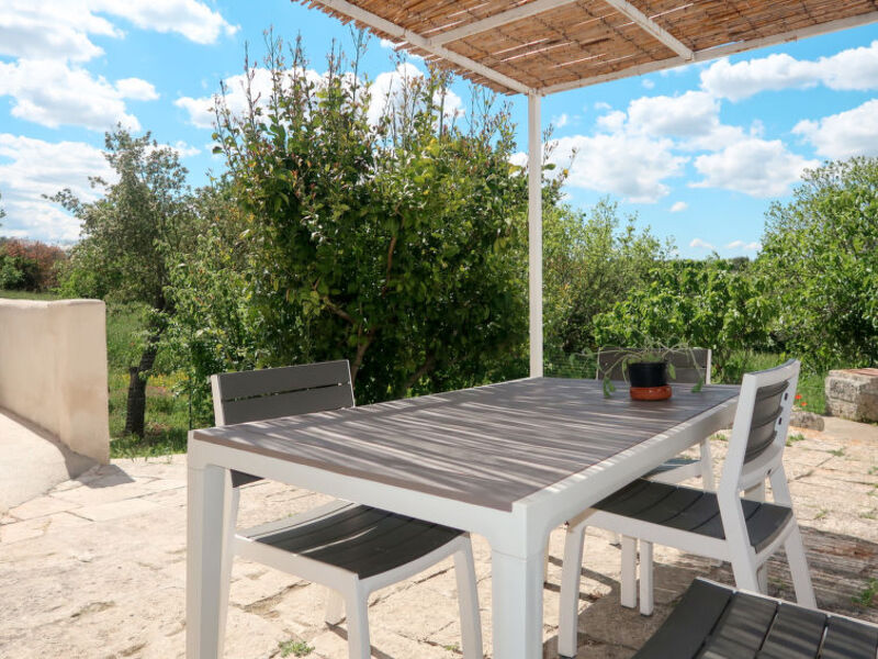 Feature: country cottage, rustico. Situation: rural. Access/parking: parking on the estate. Estate (private use): approx. 10000 m², closed plot (fence, wall, entrance gate), natural surroundings, fruit trees, olive trees, palm trees. Outdoor facilities(private use): terrace 25 m² (with bast top), roof terrace (without banister), reserved open space (under trees), furnishing provided, transportable barbecue. Pool (private use): 13.0 x 3.0 m, 1.40 m deep, open throughout the entire season, pool maintenance by the caretaker 2 time(s) per week. Pool area: tiled, deck chairs, sun loungers, sunshade.Important information: Please note that for arrivals after 8 pm a fee of EUR 40 will be charged. Arrivals after 11 pm are not possible.● Distances: Center Ceglie Messapica in approx. 2 km. Ostuni in approx. 8 km. Alberobello in approx. 32 km. Next supermarket (Ceglie Messapica ) in approx. 1 km. Secondary road in approx. 70 m. Train station Ostuni in approx. 12 km. Airport Brindisi in approx. 38 km. Airport Bari in approx. 90 km. Sea in approx. 18 km. Rocky beach in approx. 18 km (Villanova). Sandy beach in approx. 18 km (Marina di Ostuni).