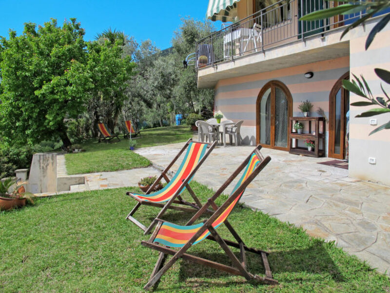 Feature: Property in a two-family property. Situation: rural, hillside location, in the district Regione Monti, sea view, view of Isola Gallinara. Access/parking: gravel road, approx. 300 m, steep, narrow, winding. Estate (shared use with the owner): approx. 9000 m², terraced, olive trees.Pool (shared use): 6.3 x 3.6 m, 1.20 m deep, 15.06.19-02.11.19, curved shape, frame swimming pool.● Distances: Center Albenga in approx. 3 km. Alassio in approx. 5 km. Loano in approx. 12 km. Next supermarket (Albenga) in approx. 2.8 km.Airport Genova in approx. 88 km. Airport Nice in approx. 123 km. Train station Albenga in approx. 3.7 km. Harbour/marina Alassio in approx. 3 km. Sea in approx. 1.2 km. Pebble beach in approx. 1.2 km. Sandy beach in approx. 5 km (Alassio). Aquapark in approx. 8 km (Le Caravelle/Ceriale). Golf course Garlenda (18-hole golf course) in approx. 11 km.