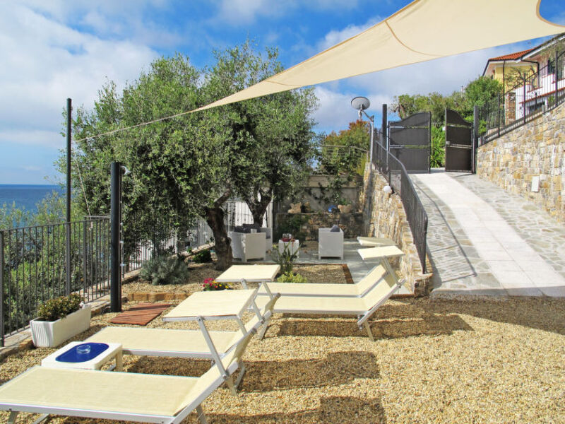 Moderní, samostatně stojící dům "La Perla del Mediterraneo", postavený v roce 2016. 600 m od centra Cervo, 9 km od centra Imperia, 15 km od centra Alassio, ve svahu, v obytné čtvrti, 150 m od moře.