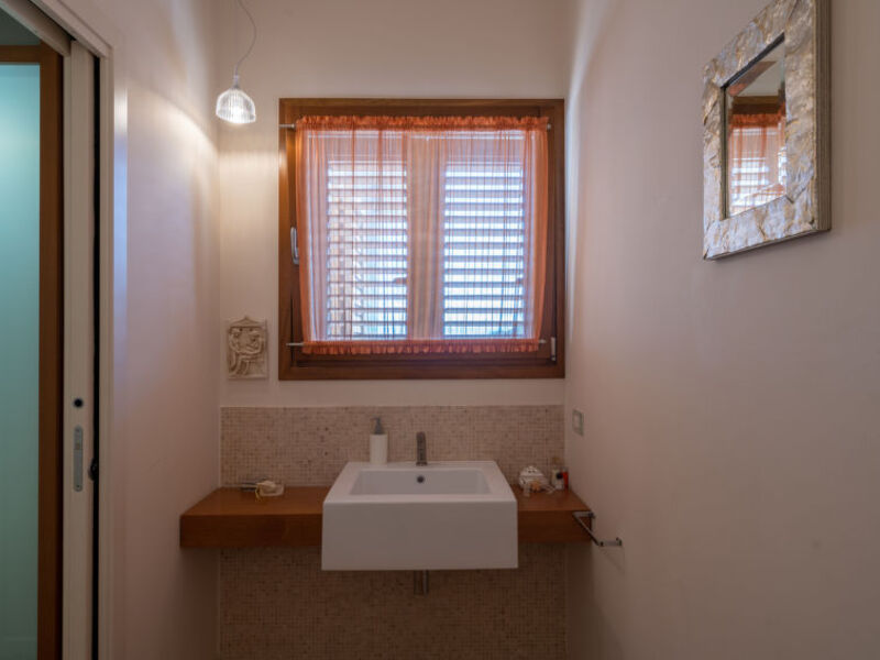 bezpečnostní zařizení. 50 m dlouhý příkrý příjezd. K domu vede cesta se schody. Parkovací místo (3 x), garáž. Obchod 2. km, supermarket 6. km, písečná pláž 6. km oblázková pláž 10 km. Majitel neakceptuje skupiny.