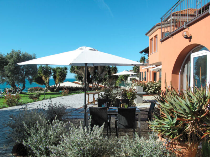 Malá, pěkná, samostatně stojící rezidence "La Tuffatrice", 2-podlažní. 7 apartmánů v domě. 1. km od centra San Lorenzo al Mare, 4 km od centra Imperia - Porto Maurizio, 19 km od centra San Remo, slunná, vyvýšená poloha, oblast se slabým provozem, 100 m od moře, ve slepé ulici.