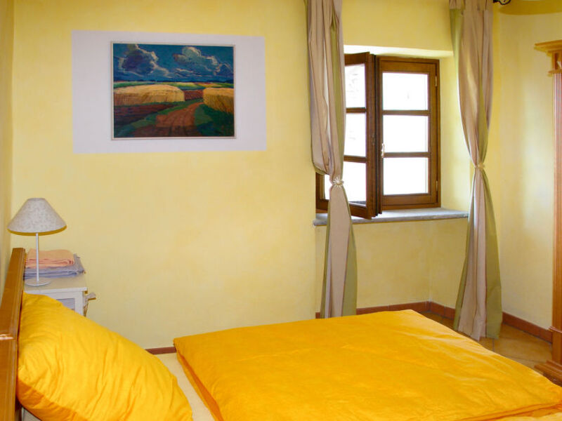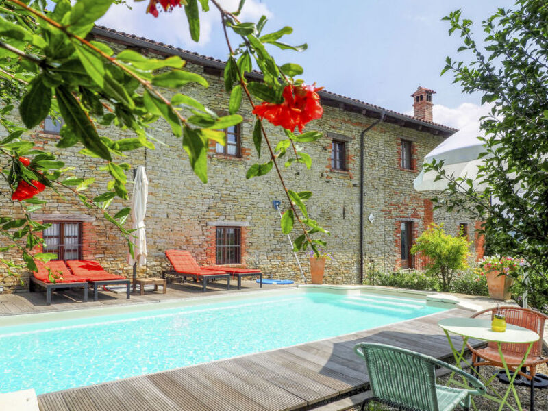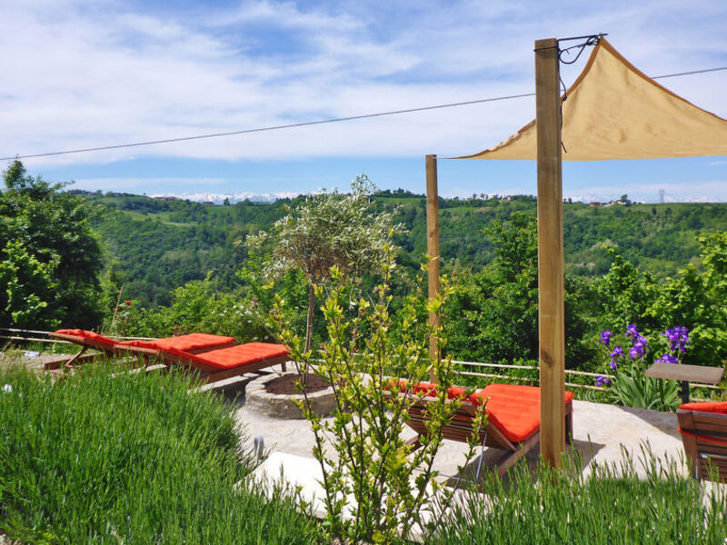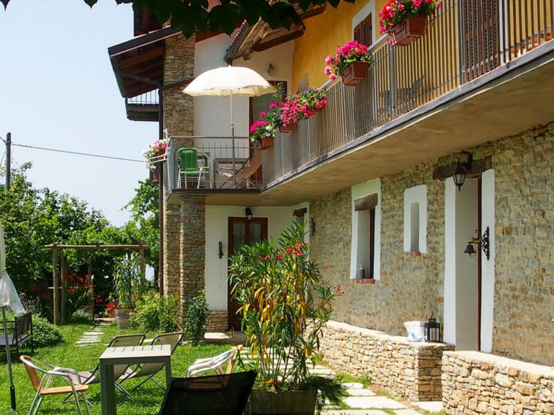 Chata "Casa d'Oro", 650 m n. . obklopena loukami, poli a vinicemi. 4 apartmány v domě. 3 km od centra Murazzano, 10 km od centra Dogliani, 20 km od centra Barolo, samostatně stojící poloha ve svahu, 56 km od moře.