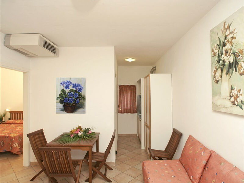Apartmán Bilo Giannutri pro 2/4 osoby (40m²): Obývací pokoj s kuchyňským koutem a dvěma samostatnými lůžky, ložnice, koupelna, terasa.