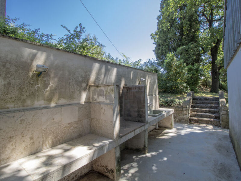 park 3'000 m2 (oplocený), pěkná zahrada k relaxaci, bazén, ledvinový tvar (140 cm hluboký, 01. 6. 30. 9. . Venkovní sprcha, zahradní nábytek, gril. Údržba bazénu majitelem/správcem. Příjezd (100 m přírodní cesta). Parkovací místo (kryté) u domu. Supermarket 800 m, restaurace 2 km.