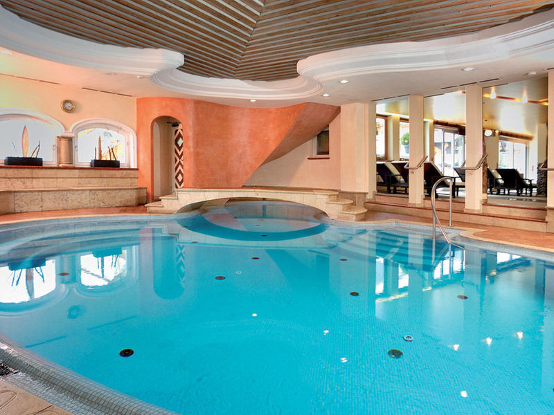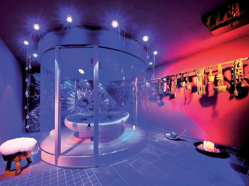 bazén 10 x 5 m, venkovní vyhřívaný bazén 10 x 5 m se slanou vodou a umělým vodopádem, venkovní vířivka se slanou vodou, finská sauna, biosauna, aromatická pára, privátní parní sauna s lehátky, termárium, infrakabina, multifunkční sprcha, horizontální solárium*, relaxační koutek s lehátky a vyhřívanými vodními lůžky, masáže*, kosmetické služby*, velká, nadstandardně vybavená posilovna, biliár*, stolní fotbal*, poker-casino*