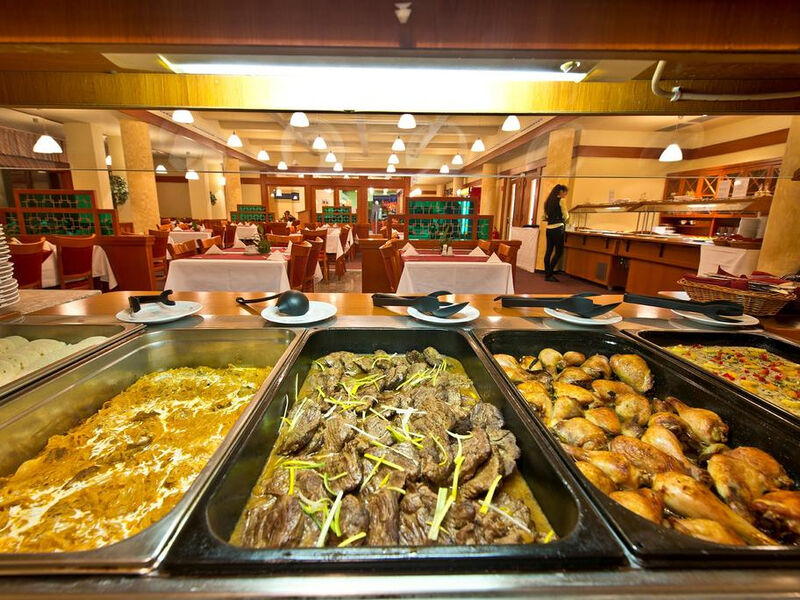 Polopenze. Snídaně a večeře jsou podávány formou teplých a studených bufetových stolů s širokou nabídkou jídel a nápojů, obědy pro hosty jsou servírované s možností výběru z 3 až 5 jídel včetně vegetariánského menu.