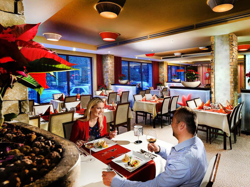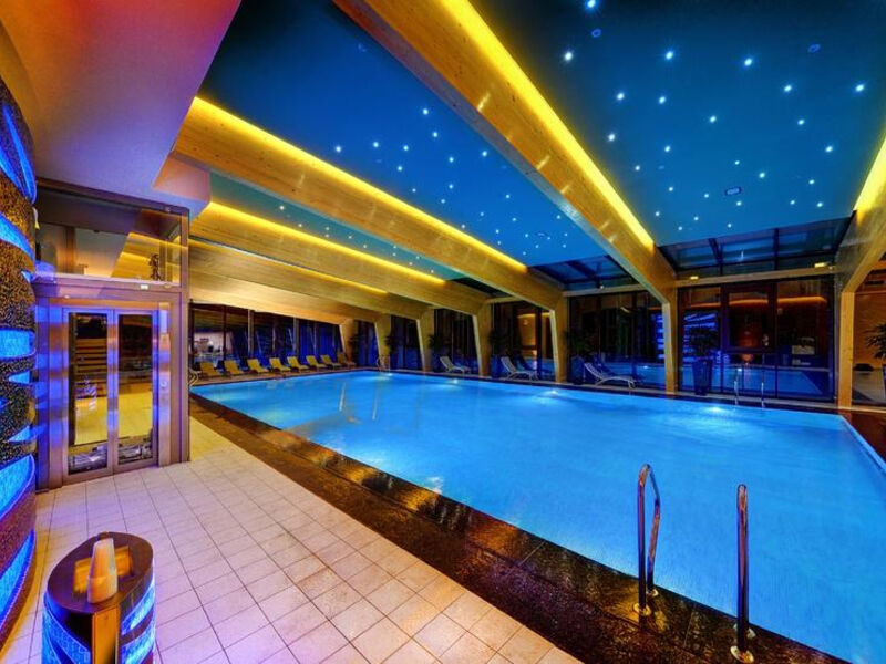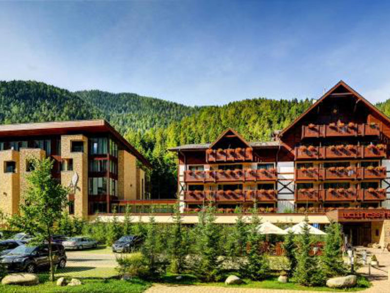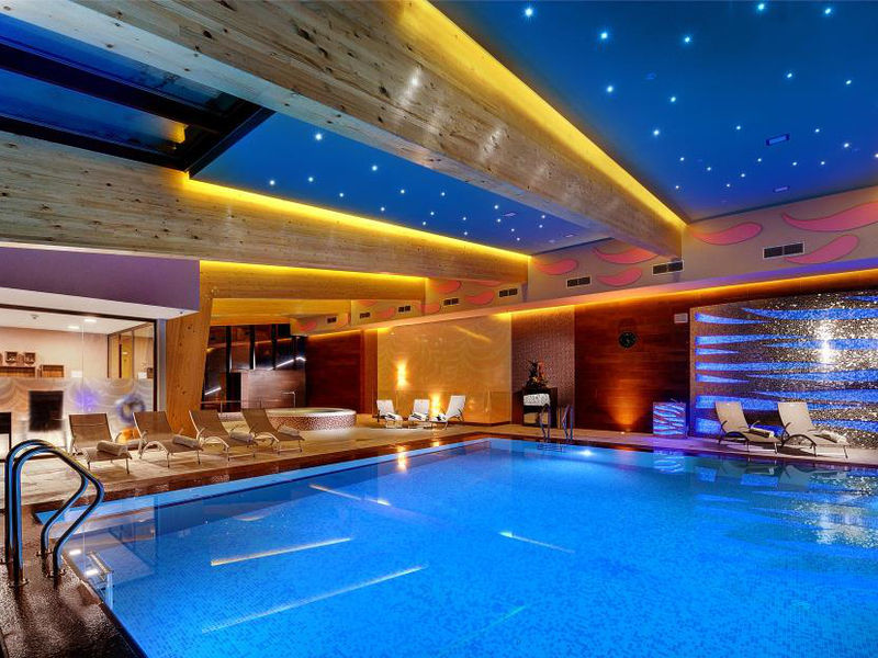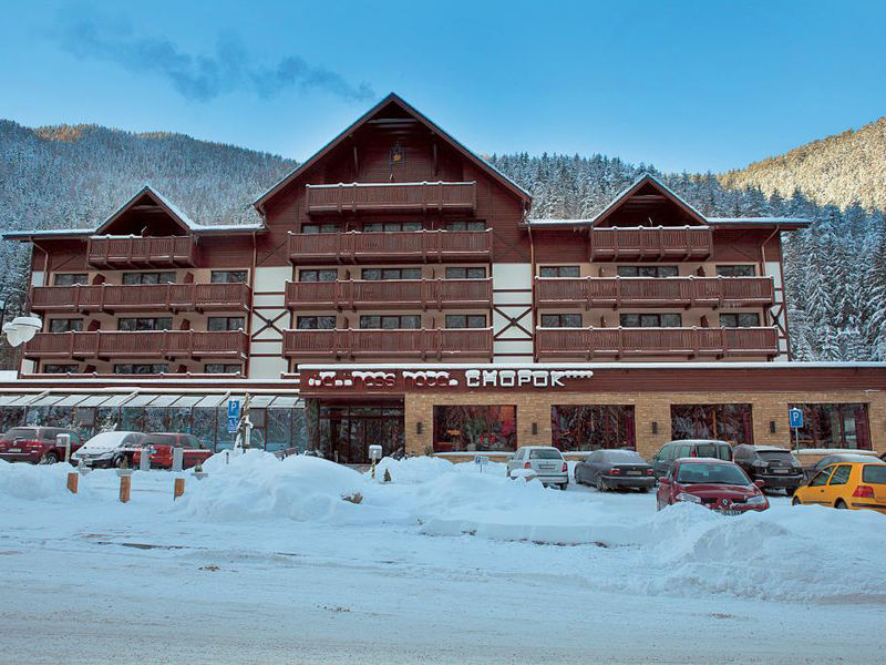 80 pokojů, restaurace, lobby bar, relax bar a lyžárna.