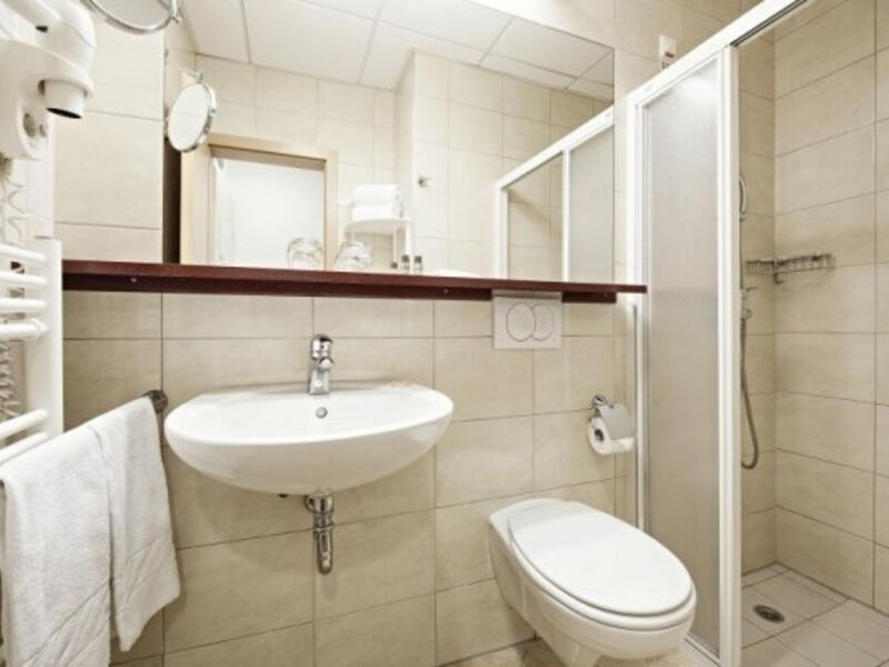 dvoulůžkový pokoj (s přistýlkou) a sociálním zařízením, telefon, satelitní televize, minibar, fén