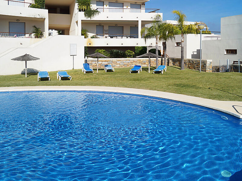 zahrada s trávníkem, 2 bazény (sezónní dostupnost: 01. ed. 31. ro. . Sprcha/WC u bazénu, malý dětský bazén / brouzdaliště. K domu vede cesta se schody (5 schodů). Supermarket 4 km, restaurace 4 km, písečná pláž "Bahía Marbella" 5 km. Golfové hřiště (18 jamek) 4 km.