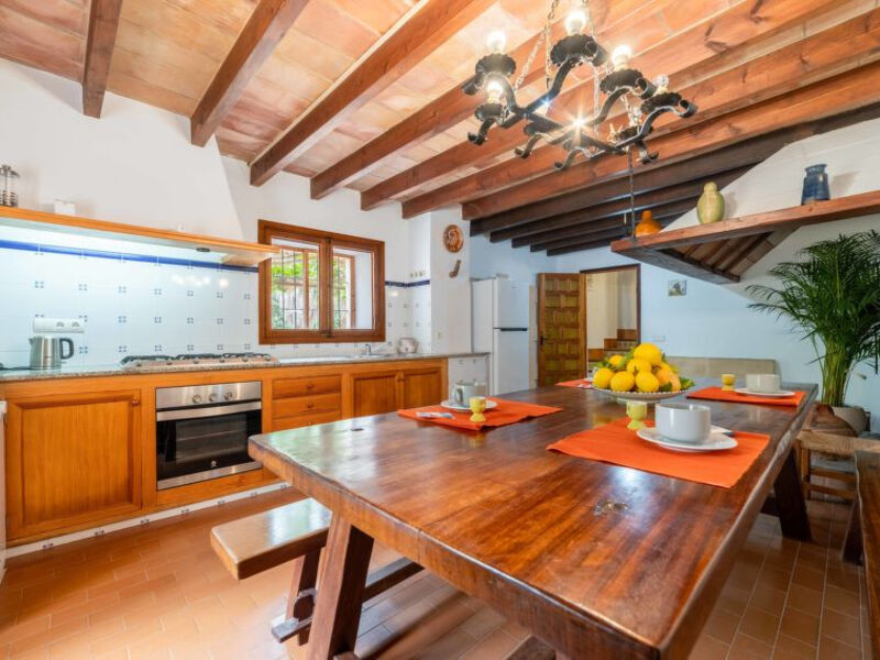 přírodní pozemek 25 ha, udržovaná zahrada 2'000 m2 (oplocená) s trávníkem a stromy, bazén (8 x 4 m velký, 01. 1. 31. 2. . Venkovní sprcha, zahradní nábytek, grilovací domek, parkovací místo na pozemku. Obchod 6 km, písečná pláž "Puerto de Alcúdia" 8 km. Golfové hřiště (9 jamek) 10 km.