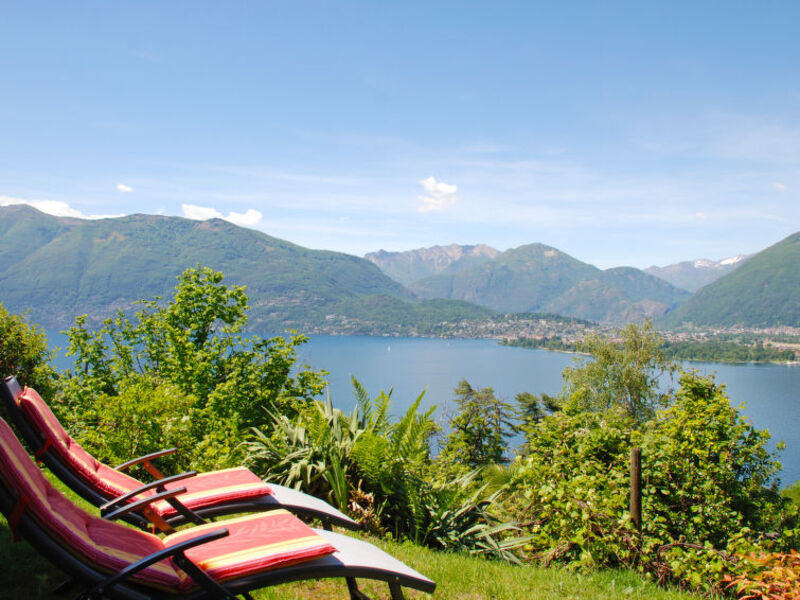 San Nazzaro 18 km od Locarno: Pěkný, komfortní rodinný dům "Casablanca", 2-podlažní, obklopen stromy. 3 apartmány v domě. Na kraji obce, v okrsku Gambarogno, klidná, slunná, vyvýšená poloha, v zeleni, jihozápadní orientace.