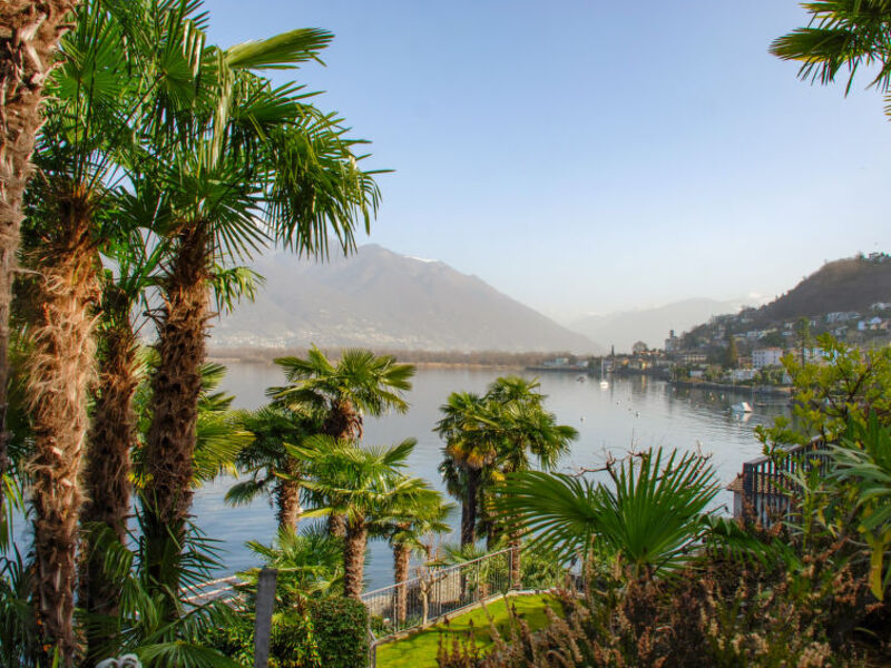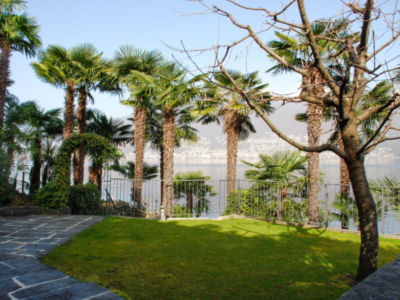 Vira 16 km od Locarno: Velký, komfortní apartmánový dům "Viralago", 4-podlažní, postavený v roce 1960, renovovaný v roce 1998, obklopen stromy a loukami. 38 apartmánů v domě. V obci Vira, centrální, živá, slunná poloha, 10 m od jezera, přímý přístup na pláž, na hlavní ulici.