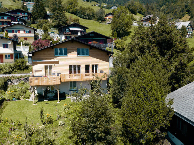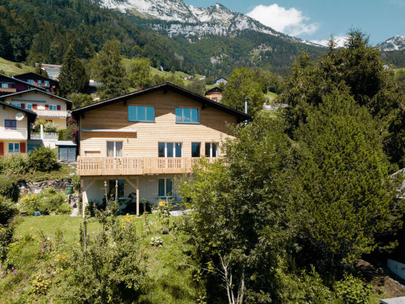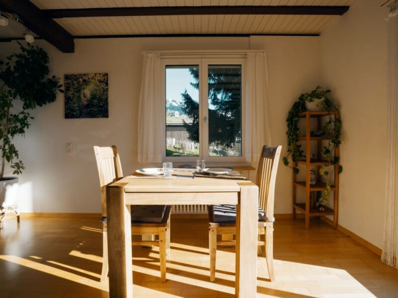 Amden in the Swiss Alps - a dream place, a dream region - and in the middle is the spacious "Chalet Arunachala". The holiday home in the mountains offers space for family holidays, small groups or couples. On the ground floor, with its own garden, is the 2-room apartment - perfect for a vacation in summer or winter. The holiday chalet is located in a quiet holiday home district near the village center of Amden. Restaurants, a café, supermarkets, the Mattstock chairlift and the pretty indoor pool in Amden are all within walking distance. There is a parking space in front of the house. And skiing is not far either: the family ski area with ski school can be reached in 10 minutes by bus or car. From the garden or the balcony, the view sweeps over the incredibly beautiful mountains. "Arunachala" means "Hill of Dawn" - a homage to the wonderful morning moods over Walensee. Amden stretches across the lovely Ammler mountain hollow at around 1,000 meters and at its base lies the turquoise blue Walensee. In this location, lake and mountain are situated in an unbeatable combination: a visit is worthwhile in every season. Pleasant bathing spots along the Walensee entice swimmers, along with the snowy mountain landscape around Amden. In autumn - the colorful season - a large number of hiking trails invite you to take an extended tour and in spring one of the highest waterfalls in Europe bubbles with enormous amounts of water. Our tip: A trip to the Durschlegi viewpoint above Amden. From this vantage point, the magnificent panorama can be admired in a 360° perspective. In addition, the barbecue areas are perfect for leisurely enjoying hours in comfort. By the way, our area is well located for excursions in the region: within a maximum of one hour you can reach Zurich, Chur in Graubünden, St. Gallen or the rose town of Rapperswil on Lake Zurich. A renovation is planned for May and April 2020. Therefore, unfortunately, there may be a little noise during this period.