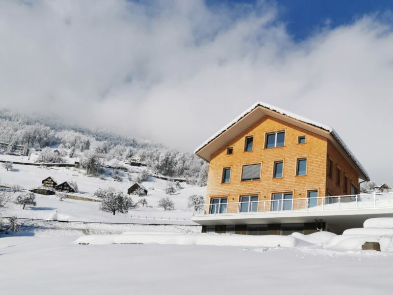 High above the shores of Lake Walen, in a unique panoramic location between Weesen and Amden, lies the luxurious Chalet Lehni. The chalet consists of two apartments with separate entrances. The first apartment in the basement offers 4 beds. The second apartment, which extends from the first floor to the attic, has a total of 12 beds. The chalet has its own garden. From the terrace you can enjoy a beautiful view of Lake Walen and the mountains. The village center of Amden and the village of Weesen can be reached by car or from the bus stop at Lehni, which is in the immediate vicinity, in about 10 minutes. In the town center of Amden is the Mattstock chairlift, the feeder to one of Amden's ski resorts. In addition, there are, among other things, restaurants, a café with a bakery and an indoor swimming pool. The chalet is very modern and was newly built in 2020. A total of four parking spaces are available in front of the chalet. The vacation region Amden Weesen, with its unique combination of mountains and lake, offers numerous leisure activities. The hiking trails with different levels of difficulty and great viewpoints invite you to hike in winter as well as in summer. In the winter it has popular ski resorts for families in Amden and Arvenbüel. The Swiss Ski School in Arvenbüel offers group and private lessons for all ages. The beautiful winter landscapes are perfect for snowshoeing. Amden is also an ideal starting point to discover the cities of Zurich, St, Gallen, Chur or the vacation region Rapperswil Zürichsee with the Rose City of Rapperswil. Our tip: A hike to Betlis starts directly from your chalet. Past the reservoir with its impressive dam wall, the trail descends through the forest to Betlis.