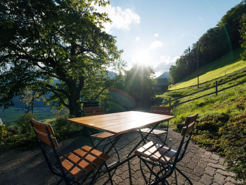 Off the beaten track, far above Weesen and the Walensee (Lake Walen), with a magnificent view over the Linth region and the Glarus Alps, is the idyllic Berghüttli Obereichholzberg. Approximately 300 meters above the valley floor, the cottage is the perfect "hideaway" for short and long stays, quiet getaways and relaxing vacations. The cozy retreat is located directly on the hiking trail between Ziegelbrücke and the mountain peaks of Federispitz or Speer. The cottage is an exclusive oasis of relaxation in the middle of a beautiful natural area, thanks especially to its secluded location. The region above Weesen and the Walensee in Eastern Switzerland is a very popular hiking area with a variety of hiking and recreational opportunities between the riviera at the Walensee and the mountain peaks of the foothills of the Alps. Given its remoteness, the Obereichholzberg mountain vacation home can only be reached via a hiking trail, from Weesen or Ziegelbrücke with your own car. From the Ziegelbrücke train station, the vacation home can be reached in a good hour on foot via a hiking trail. Via Höfen- and Rittersbergstrasse from Weesen, the vacation cottage can be reached by car up to about 500 meters from the front door. The parking lot is about a 10-minute walk from the house.